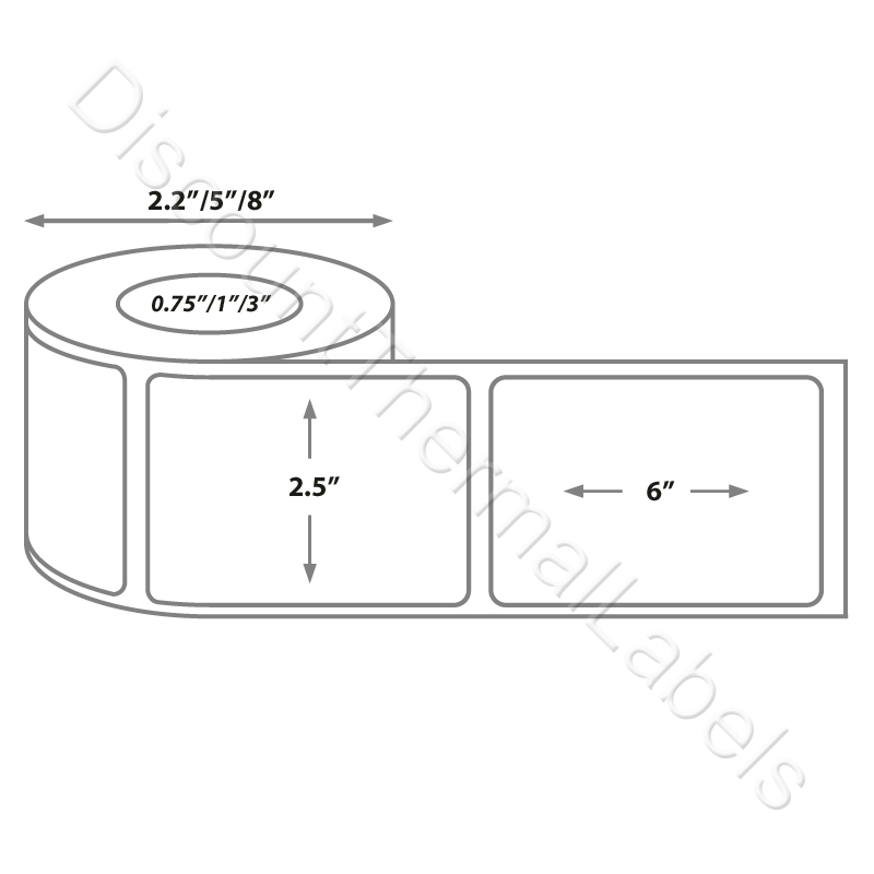 - 3/4 inch core: 80 labels per roll with a 2.2 inch maximum outside diameter