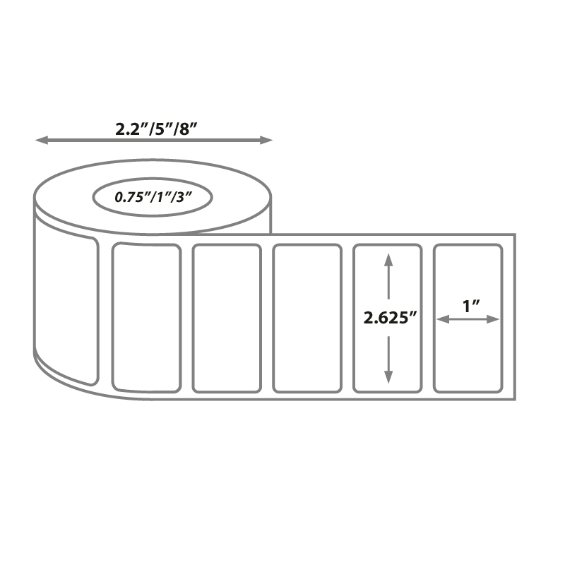- 1 inch core: 1375 labels per roll with a 5 inch maximum outside diameter