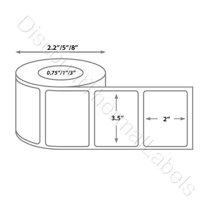 - 1 inch core: 750 labels per roll with a 5 inch maximum outside diameter