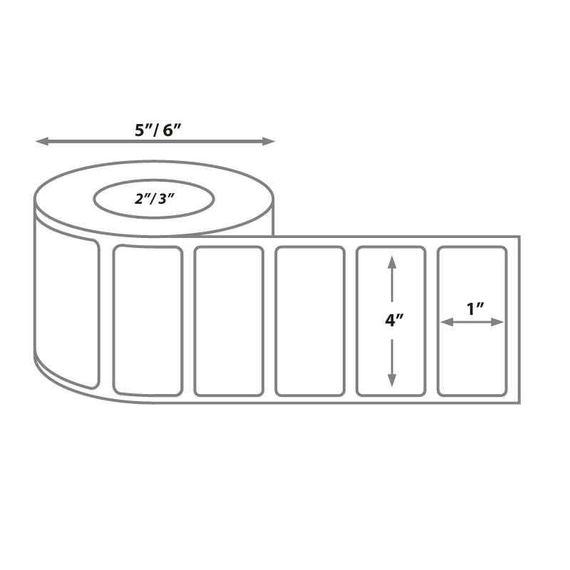 - 2 inch core: 1400 labels per roll with a 5 inch maximum outside diameter