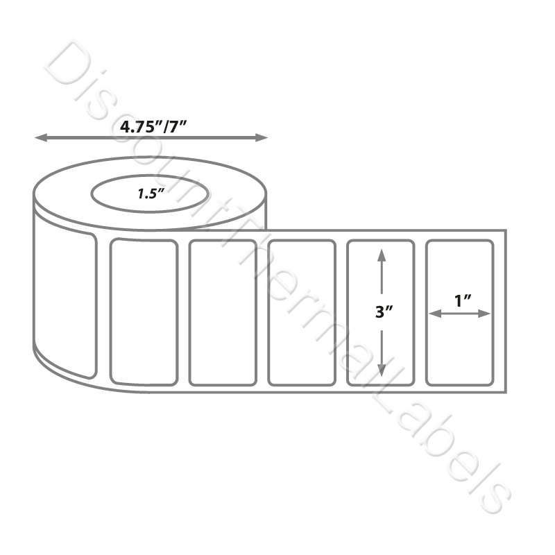 - Each 4.75 inch max outside diameter roll has 1775 labels per roll.