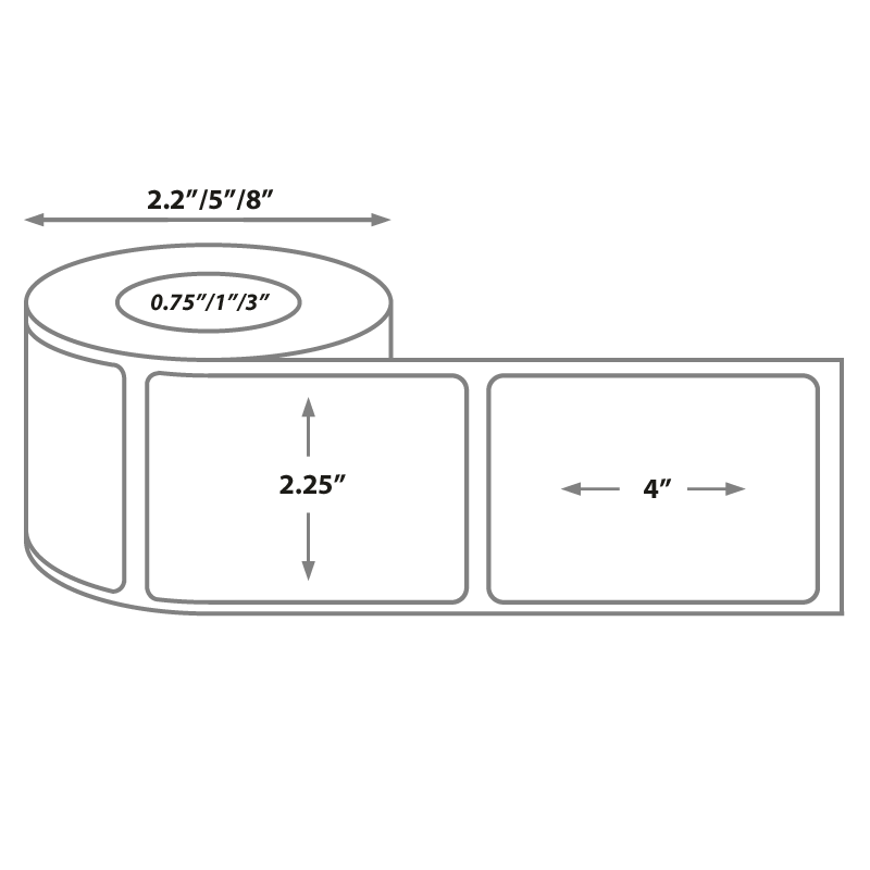 - Labels are wound around a 1 inch core and each roll has a 5 inch maximum outside diameter. Therefore these rolls will fit perfectly in your Zebra desktop printer.