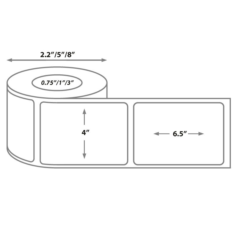 - Labels are wound around a 1 inch core and each roll has a 5 inch maximum outside diameter. Therefore these rolls will fit perfectly in your Zebra desktop printer.